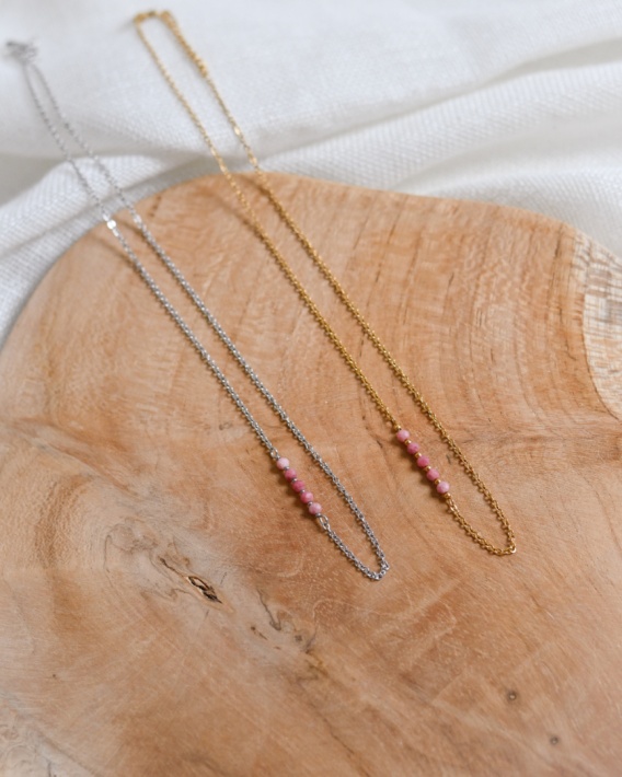 Naszyjnik ze stali nierdzewnej z naturalnymi kamieniami wykonany przez La Minerals.